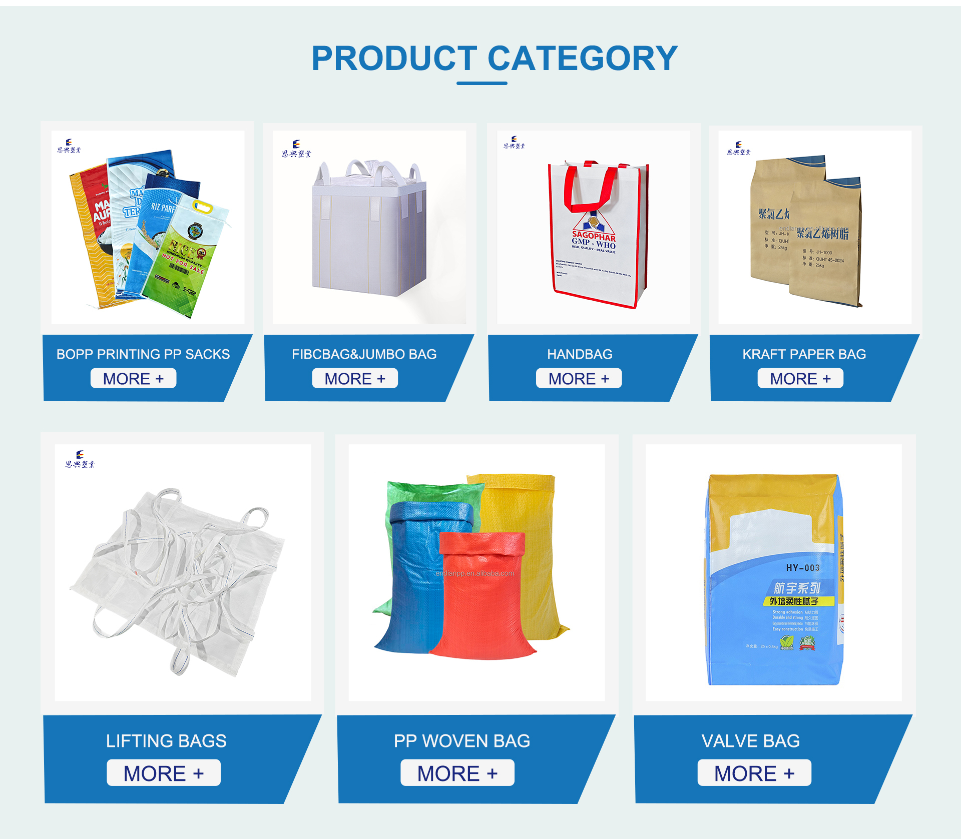 Productos principales:Bolsa de tonelada, saco tejido, bolsas tejidas PP, bolsas Fibc, bolsa Jumbo